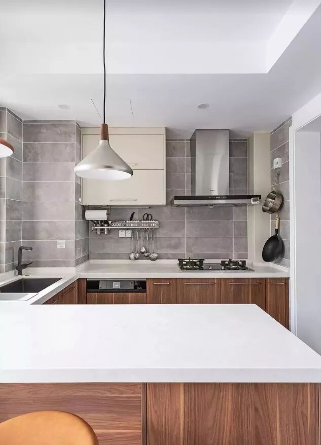 往往会有那么一些户型适合做开放式的厨房,做了开放式的厨房整个空间显得没有那么压抑,空间显得没有那么拥挤,感觉更通透,敞亮。做开放式的厨房,餐厅和橱柜中间做了一个吧台就是这两年最流行的西厨。