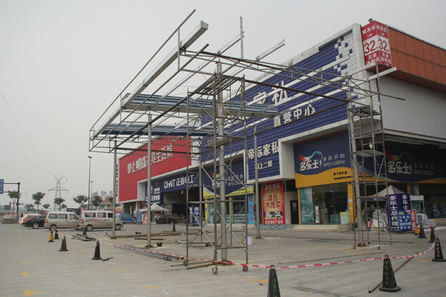 10月20日,佳飞建材家居3D体验厅主体钢结构的梁柱已经安装完毕,正在进行屋面瓦、广告位的安装,预计本月底完成该工程的全部施工。届时,上海谷居网络科技有限公司将入场进行内部装修和3D体验厅的设备安装。佳飞集团与上海谷居网络科技有限公司于上月22日达成战略合作协议,双方经过友好交流,决定在佳飞市场共同打造全国首座建材家居3D体验厅,标志着佳飞集团在建材家居行业O2O商务模式探索中,迈出了坚实的一步。