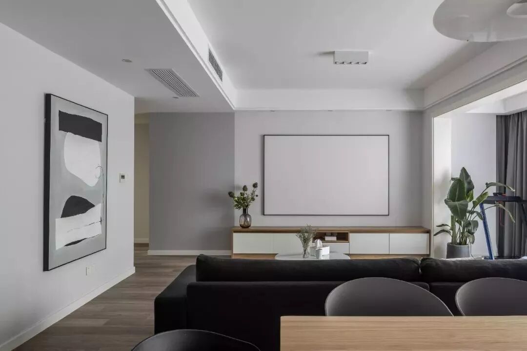 男主人钟爱电子产品,客厅选择投影仪+固定幕布,打造绝佳的影音效果。