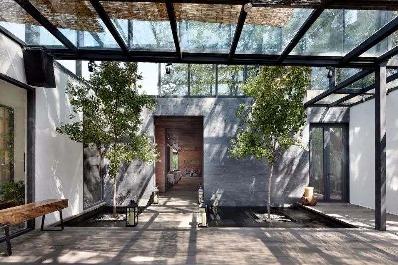 在庭院里无论是游泳、喝茶、阅读,或是和家人聊天,都能像是在室内一样放松,不用担心会被别人打扰。