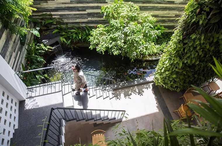 因为“下沉式”的角度,别人在外面是看不到庭院内部的,这使得下沉式庭院留有个人化的私密性。