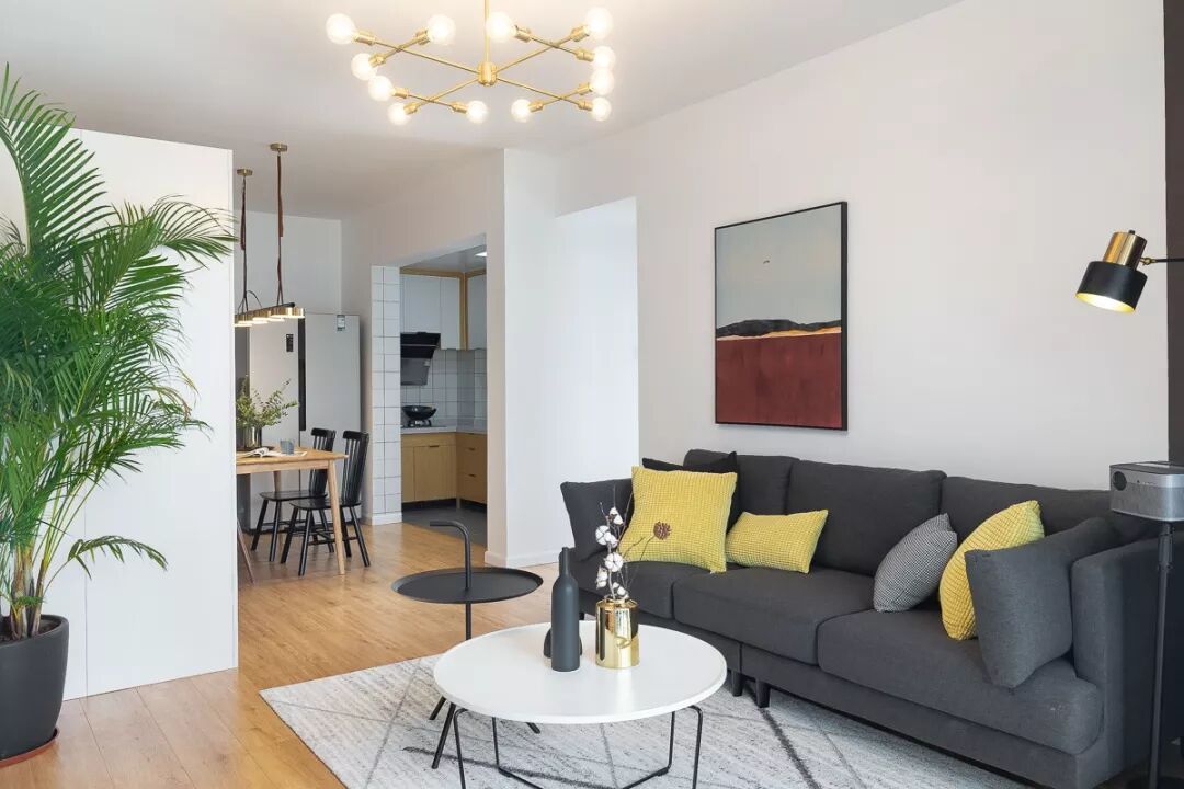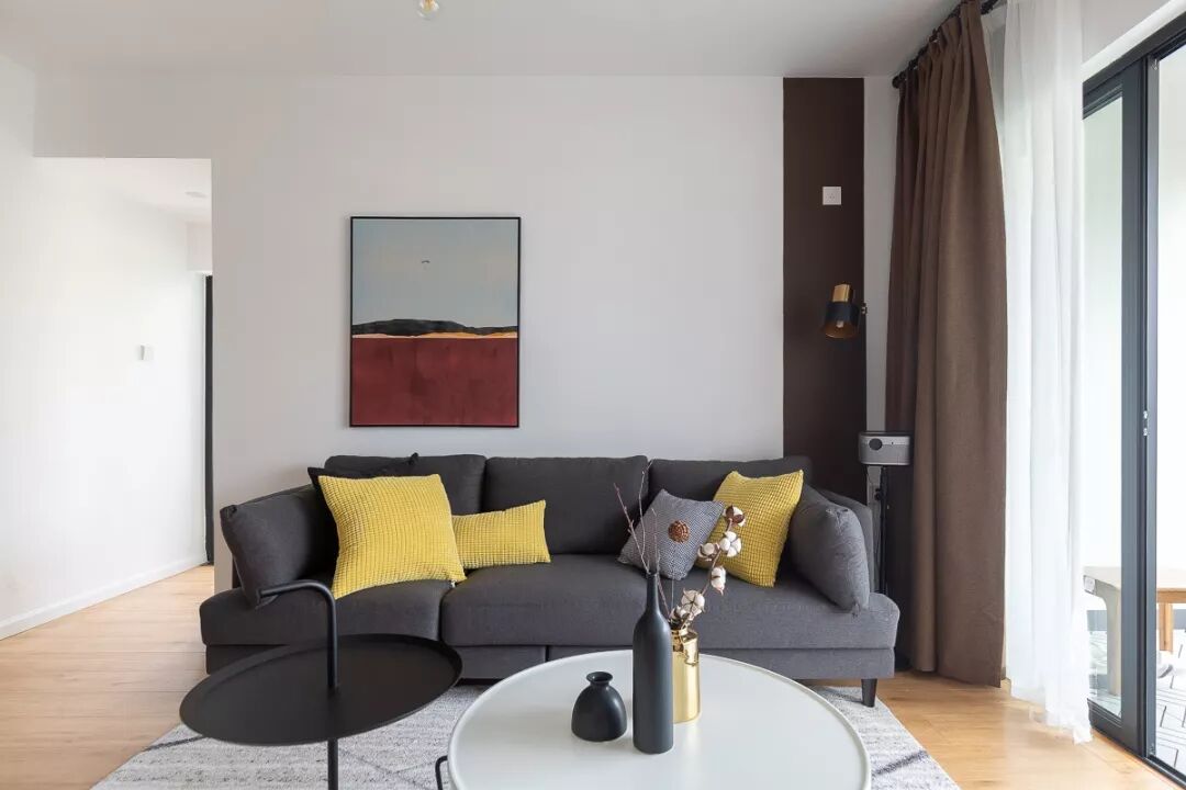 屋主更青睐高颜值简单款的茶几,方便挪动,偶尔可以坐在地毯上,晒晒太阳,看看书,喝喝咖啡,倚着沙发小憩......