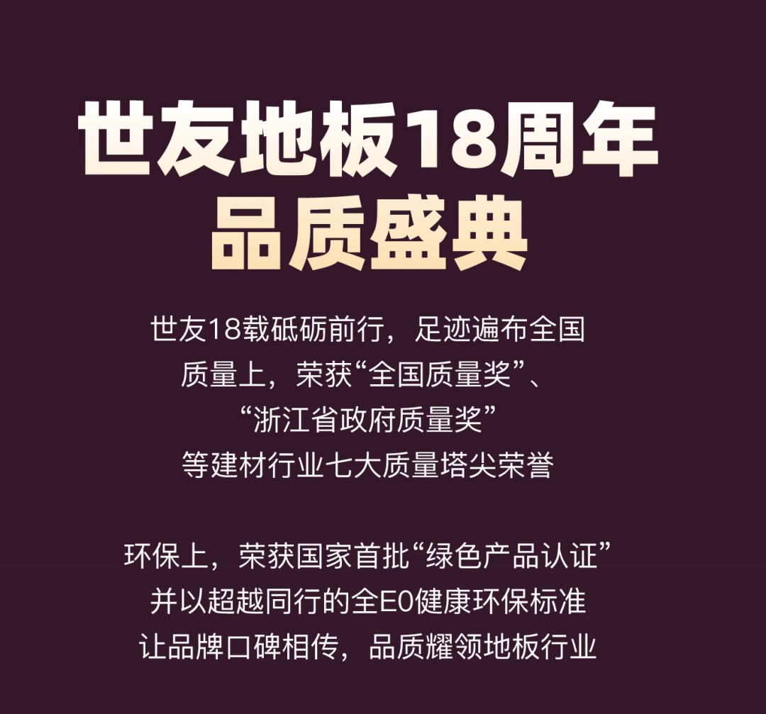 钜惠“双十一” 佳飞嗨购节 | 世友地板18周年,满5000减5000!