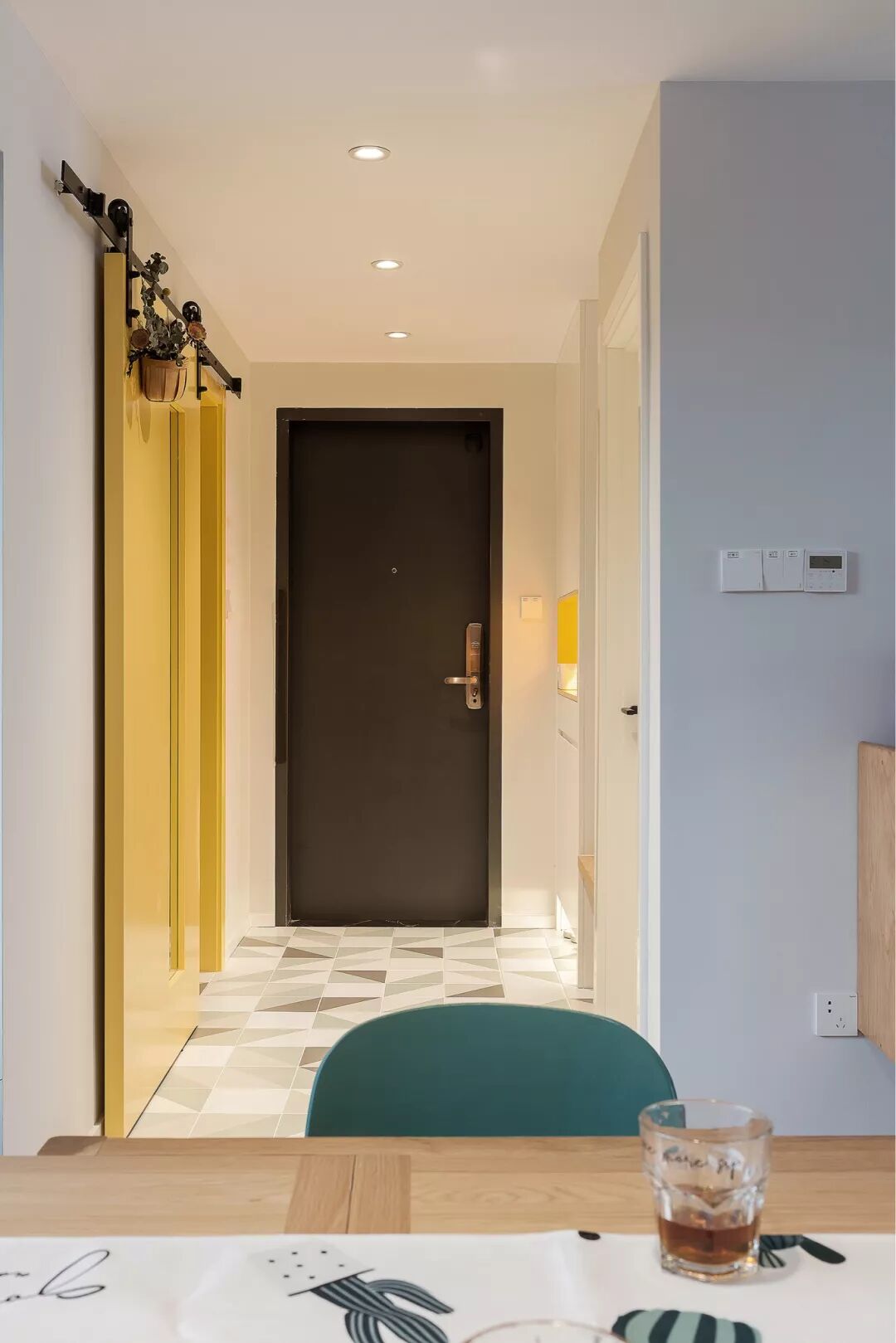 ▲玄关以黑白青色的花砖为地面,整个空间文艺精致而实用。