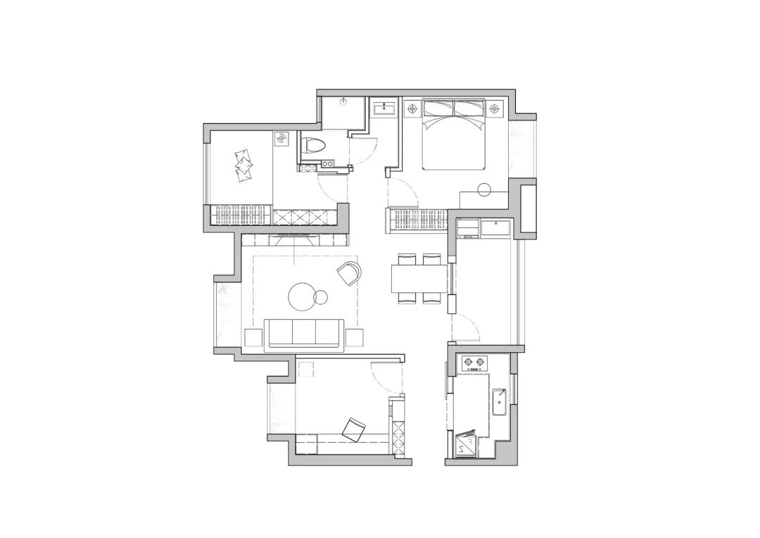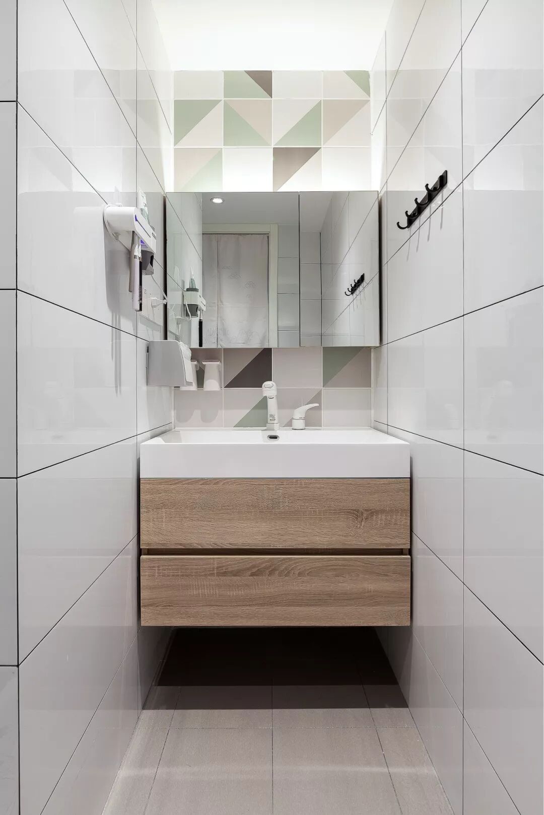 ▲小户型只有一个卫生间,洗手盆设在过道区域,避免早上洗漱与如厕时的使用冲突,提升卫浴效率。