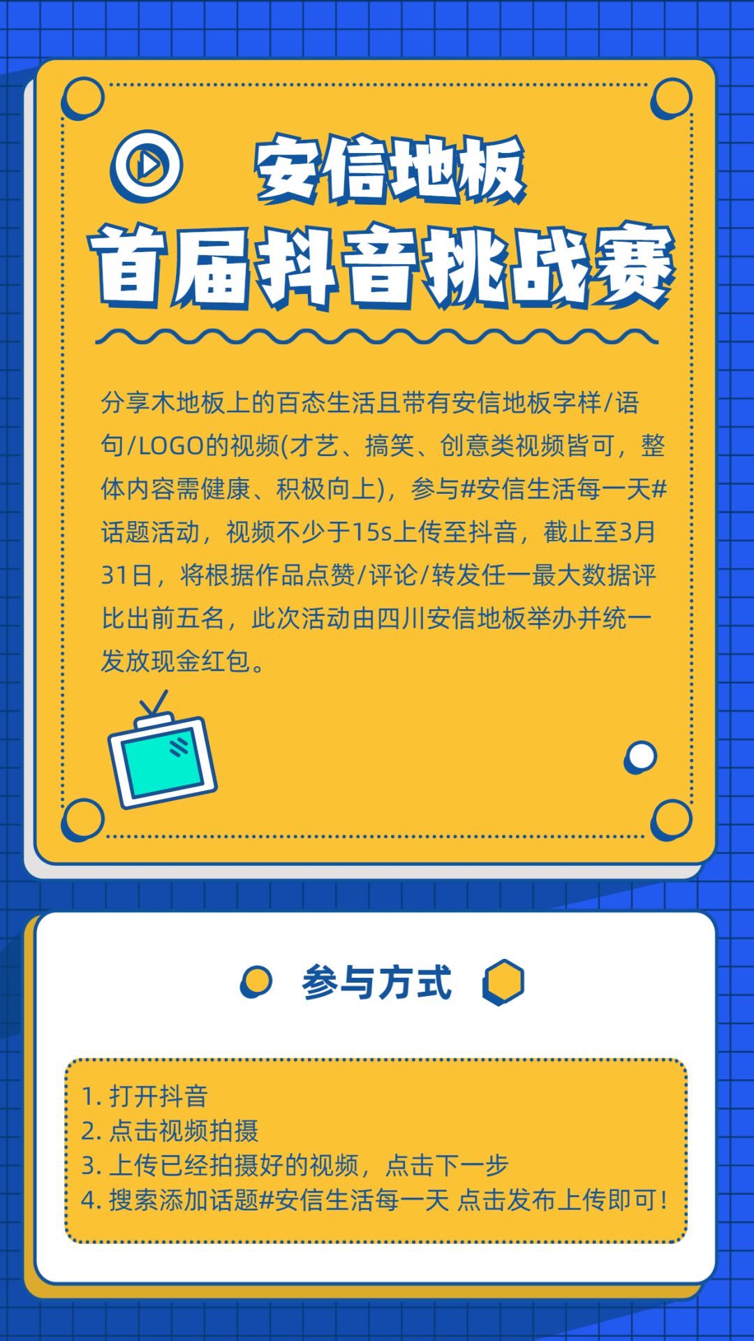 佳飞福利社 | 安信地板首届“抖音挑战赛”,现金大金等您来拿!不服来抖!