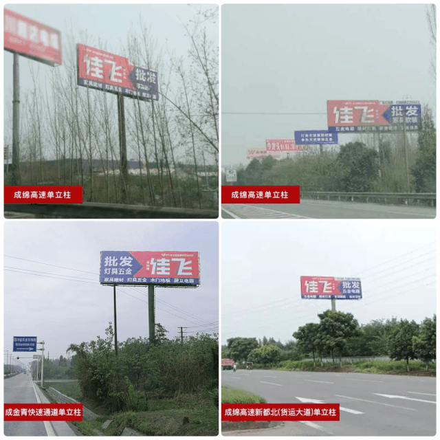继布点成绵高速、成渝高速、城南高速、货运大道、成金青快速通道等五大主要干道外,成绵复线、成南高速、成都绕城、成雅高速等高速路段单立柱大牌广告相继发布,和高速收费站道闸广告组成高速路矩阵营销。在“高曝光 强输出 精准化”的策略下,全川范围内百余块优质点位将陆续更新发布,很多粉丝感慨:一出门就被佳飞刷屏的节奏。