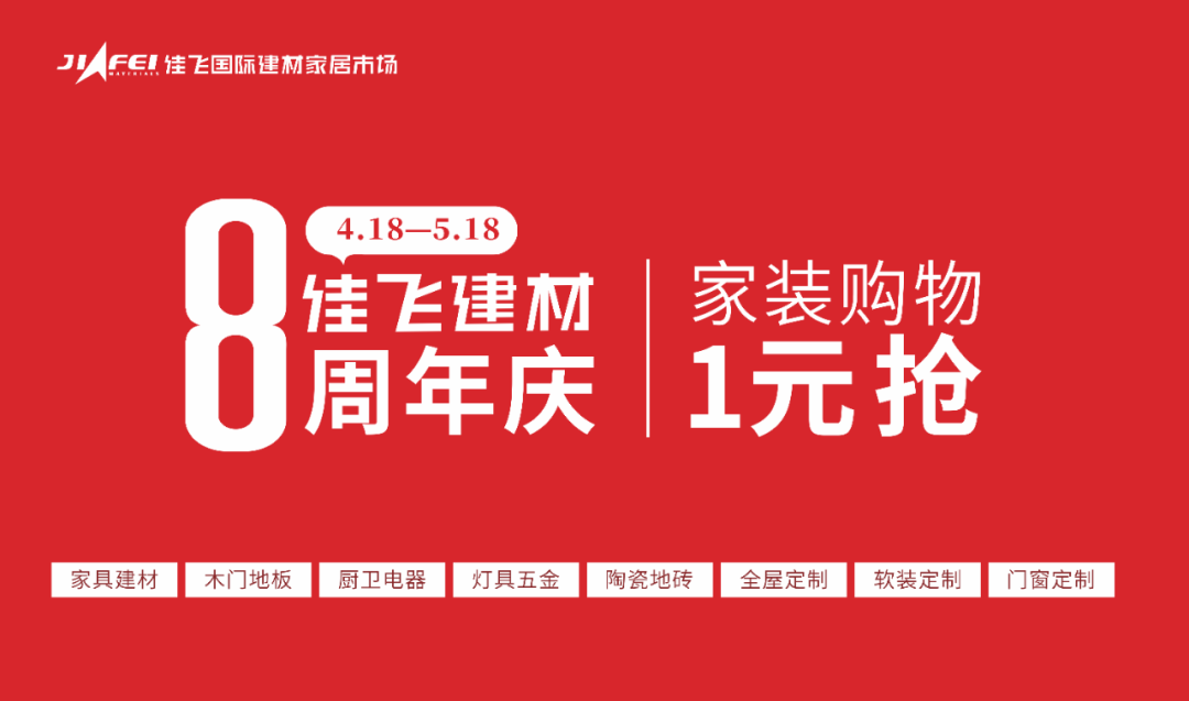 【佳飞八周年,建材1元抢】佳飞大动作,专为惊动您!