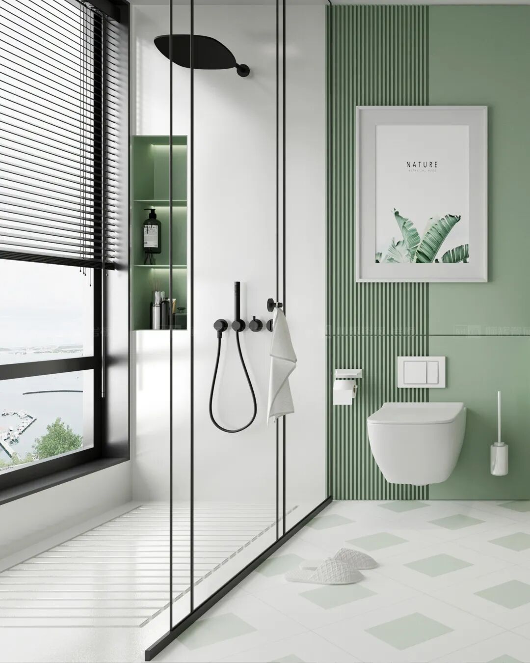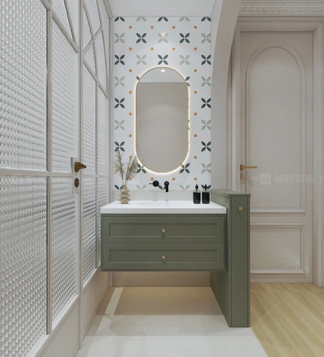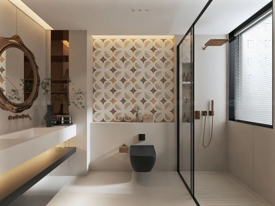 卫浴间用小花砖是非常能出效果的,既可以用来划分干湿区,又可以用在墙面进行点缀,让小空间也美得有设计感。