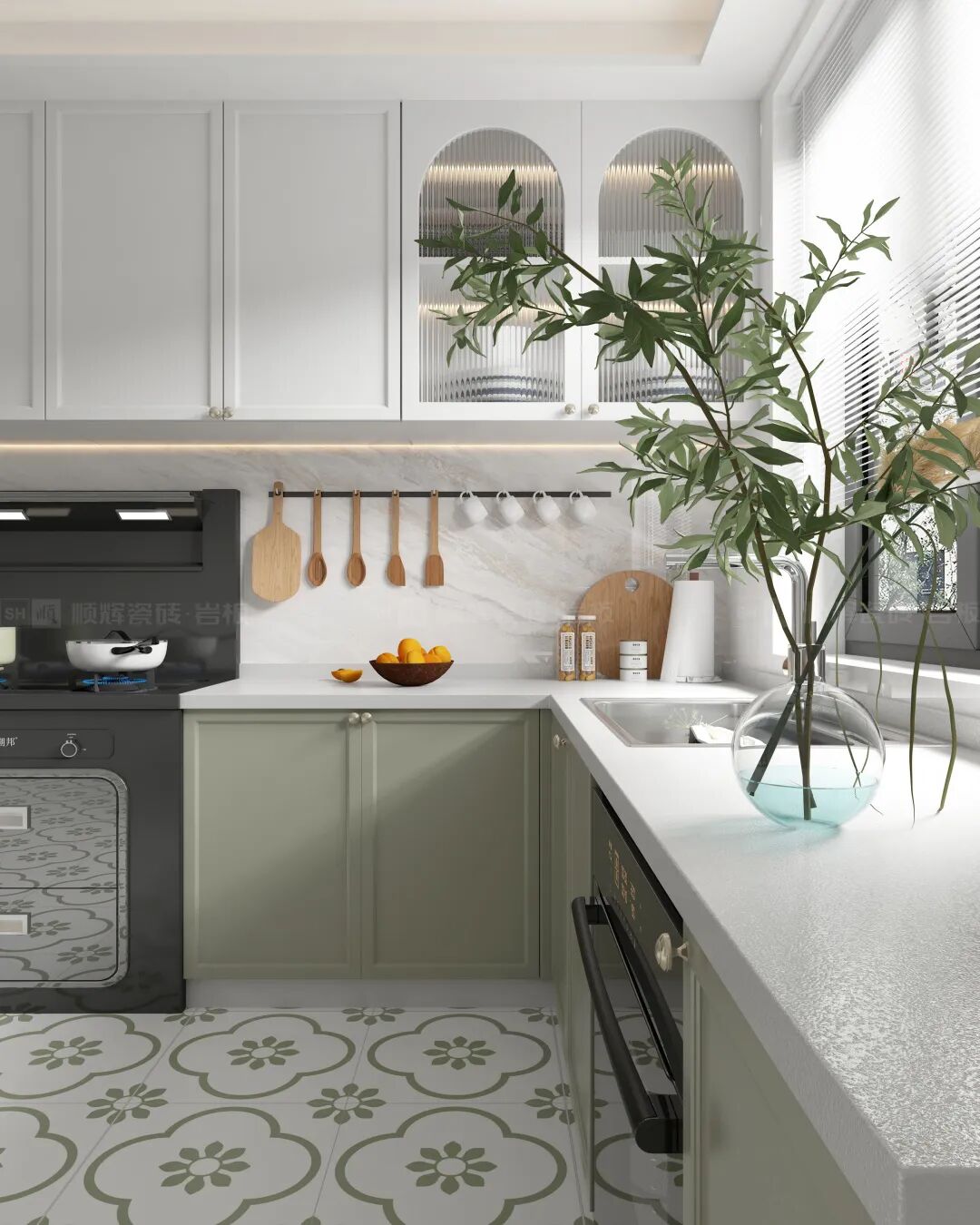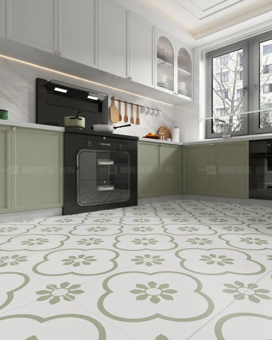 顺辉小花砖可广泛用于全空间墙地区域,能轻松搭配顺辉全品类墙地砖,在家居空间中,尤以玄关、厨房、卫浴间、阳台区域的应用最为常见和亮眼。